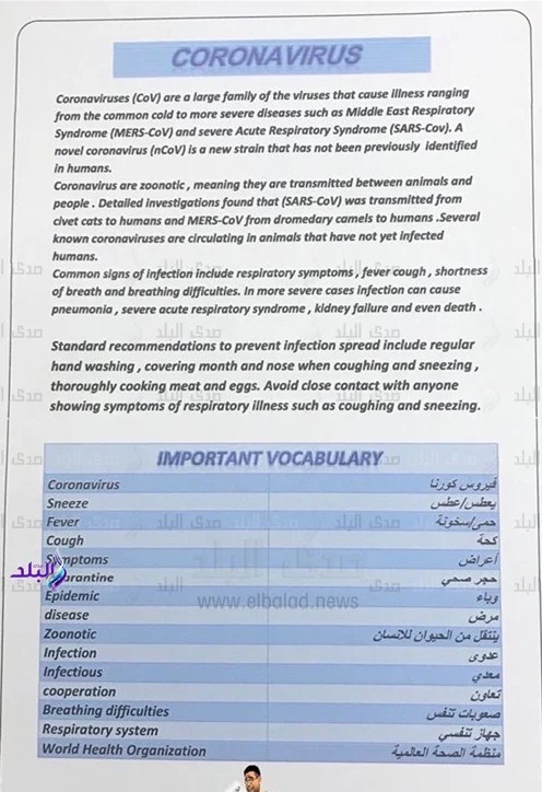 اقوى شيتات فى اللغة الانجليزية للثانوية العامة عن الجيش الأبيض و كورونا 2020