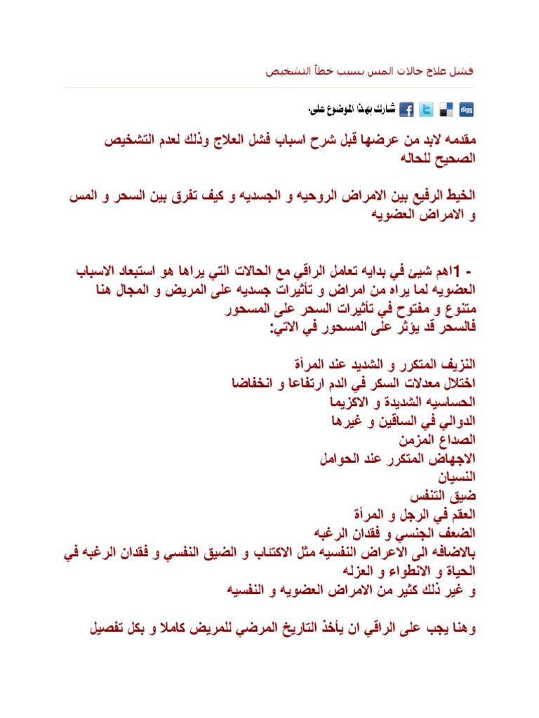 فشل علاج حالات المس بسبب خطأ التشخيص