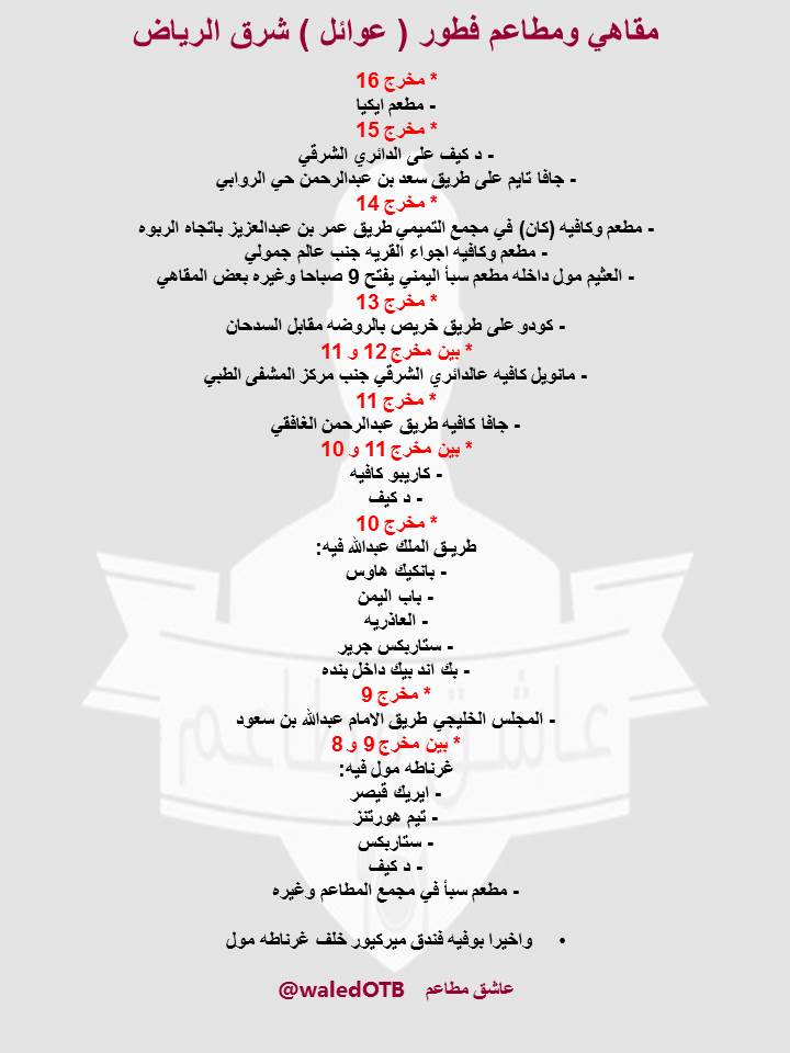 عاشق مطاعم On Twitter فطور هذي اماكن افطار عائلات في شرق الرياض مطاعم و مقاهي كلها فيها قسم عوائل وتفتح الصباح