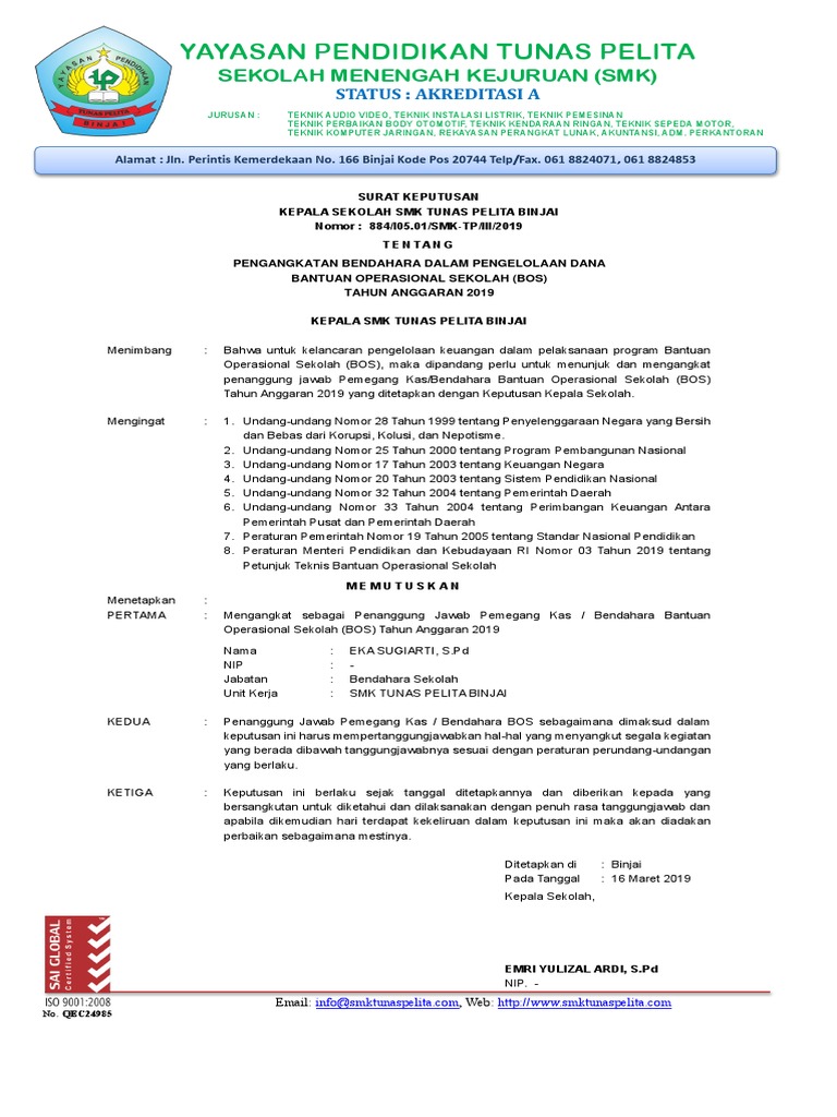 Contoh Surat Sk Bendahara Sekolah Tahun 2019 Website Edukasi