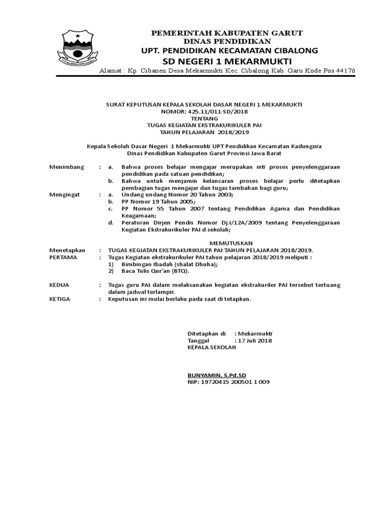 Download Contoh Sk Dan Program Eksrtakurikuler Keagamaan Pai Di Sd Guru Jumi