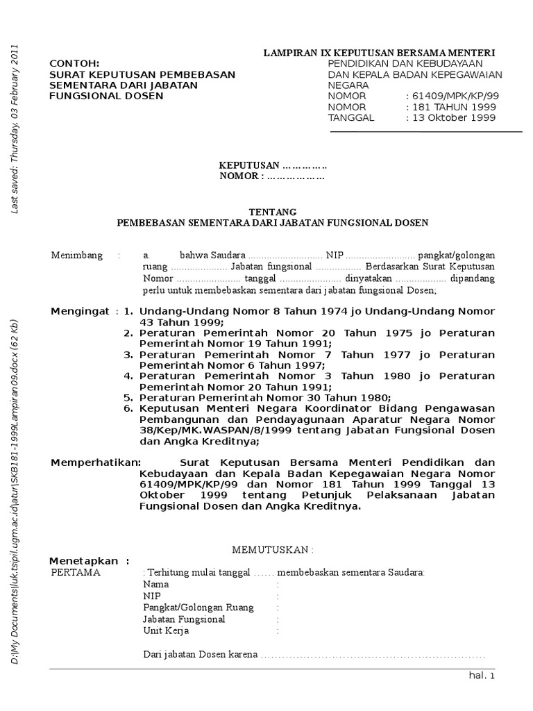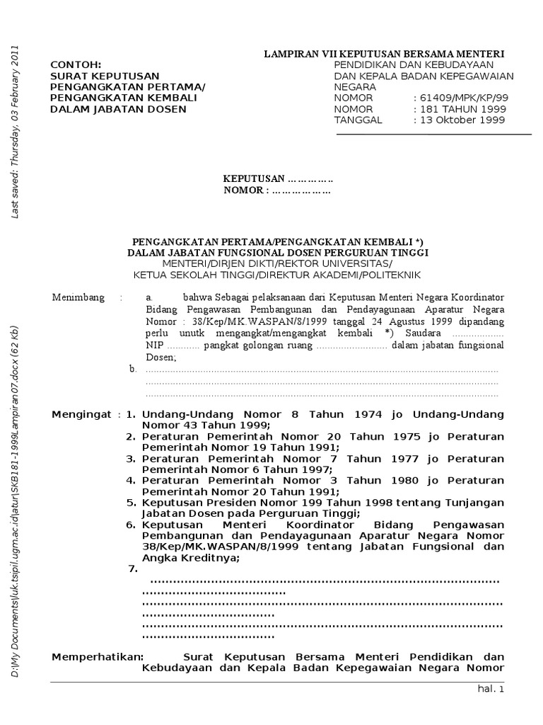 Contoh Sk Jabatan Fungsional Dosen Guru Ilmu Sosial