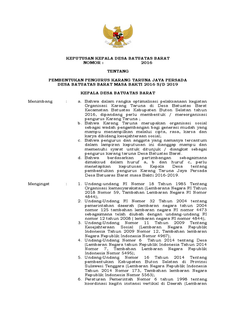 Sk Pembentukan Pengurus Karang Taruna Desa Tahun 2020 Juragan Desa