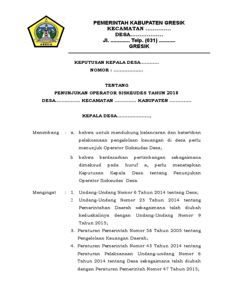 Sk Admin Operator Siskeudes Sistem Keuangan Desa Tugas Dan Gaji Nya Format Administrasi Desa