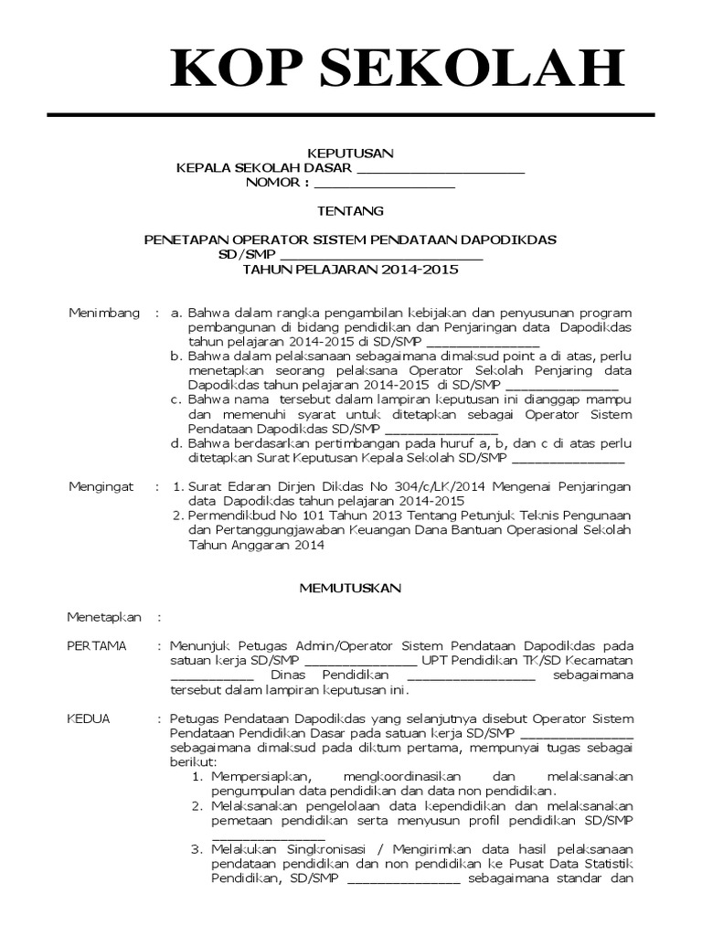 Doc Contoh Sk Operator Dapodik Sekolah Supriyanto Asabana Academia Edu
