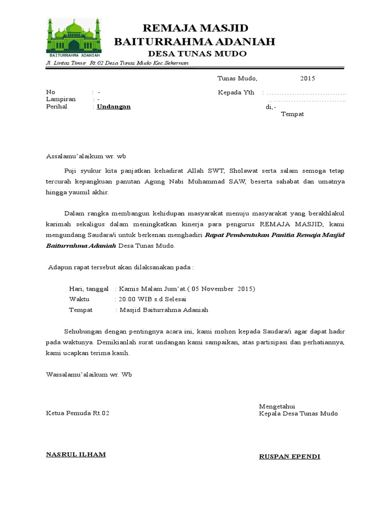Contoh Sk Pengurus Masjid Dari Kepala Desa Doc Dapatkan Contoh