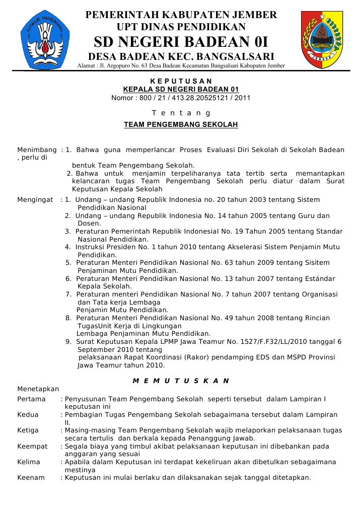 5 Contoh Sk Tim Pengembang Sekolah Terbaru Kherysuryawan Id