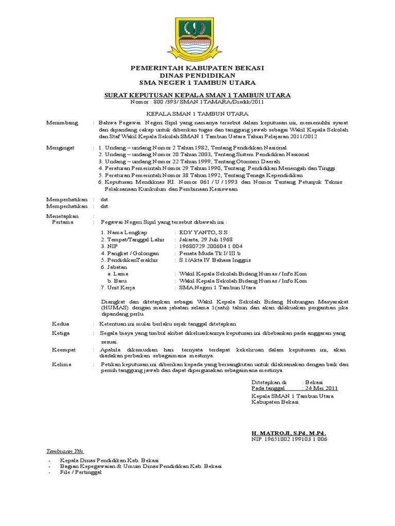 Contoh Sk Wakil Kepala Sekolah Smp Terbaru Kherysuryawan Id