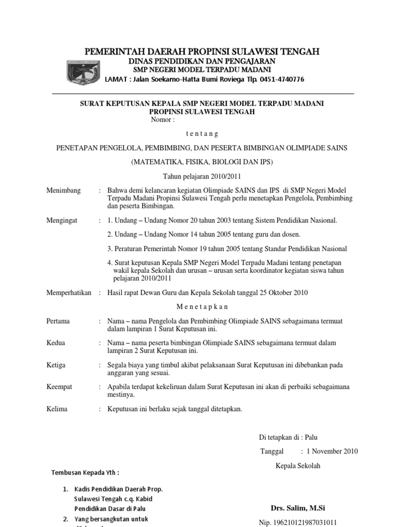 Contoh Sk Pengangkatan Kepala Sekolah Madrasah Oleh Cute766
