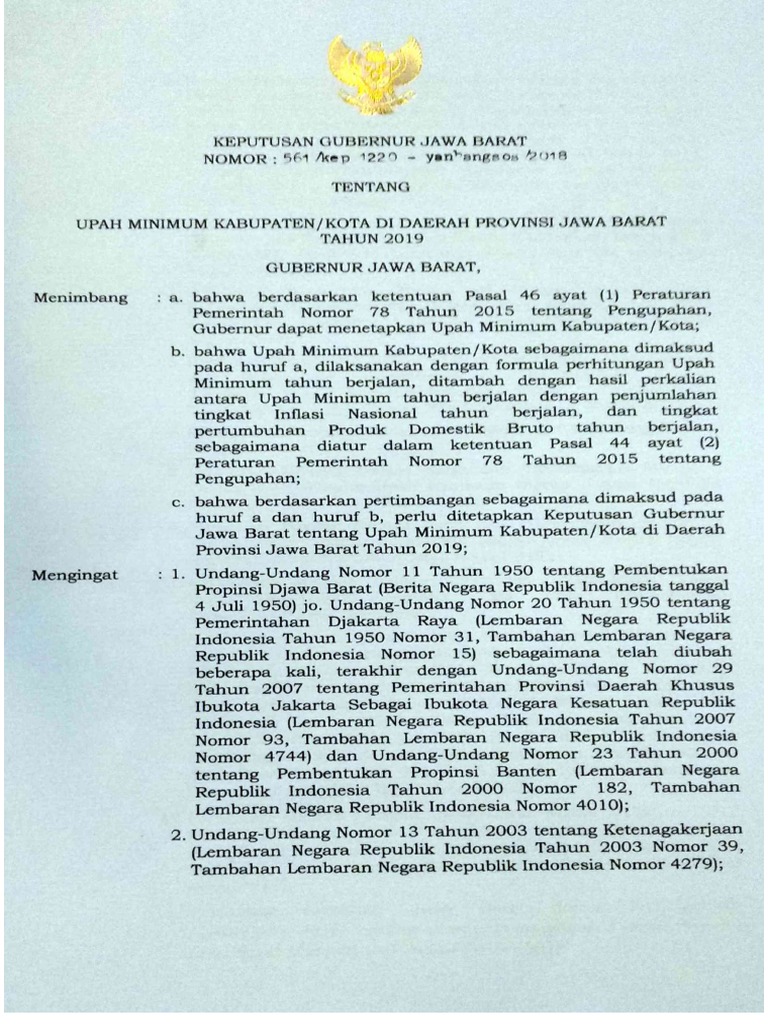 Download Sk Gubernur Jabar No 1220 Tahun 2018 Tentang Umk Tahun 2019 Di Jawa Barat Klipingbekasi