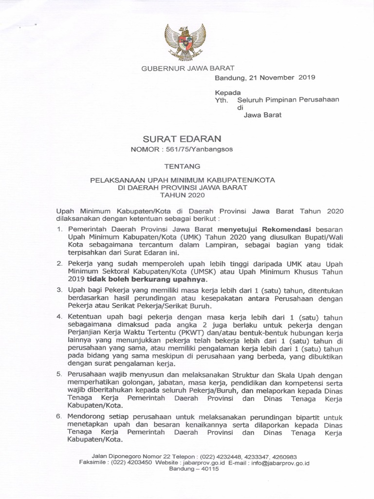 Download Sk Gubernur Jabar No 920 Tahun 2019 Tentang Ump Jawa Barat Tahun 2020 Klipingbekasi