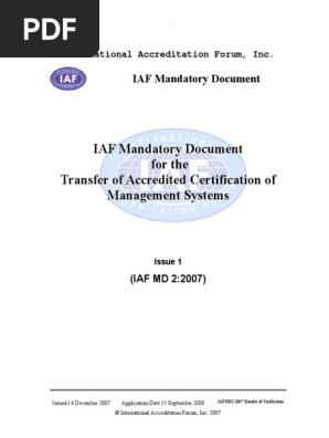 Iaf Md 2 For The Transfer Of Accredited Certification Of Management Systems Certification Government Information