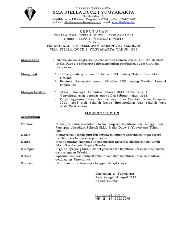 Doc Contoh Sk Panitia Akreditasi Floresta Uran Academia Edu