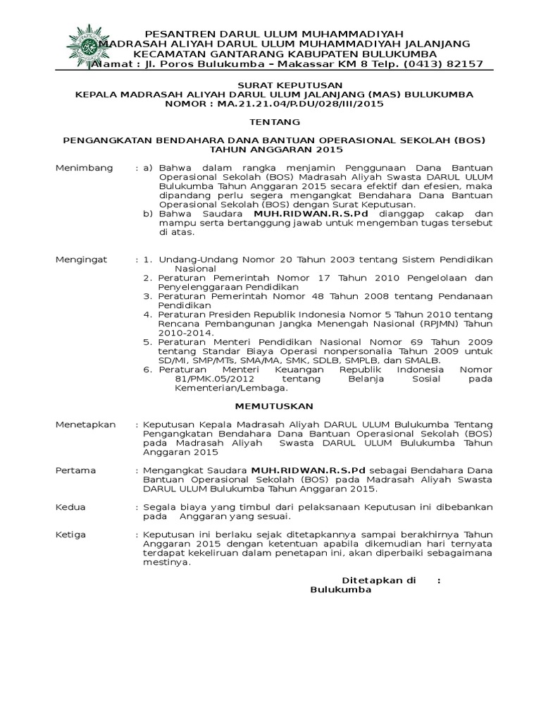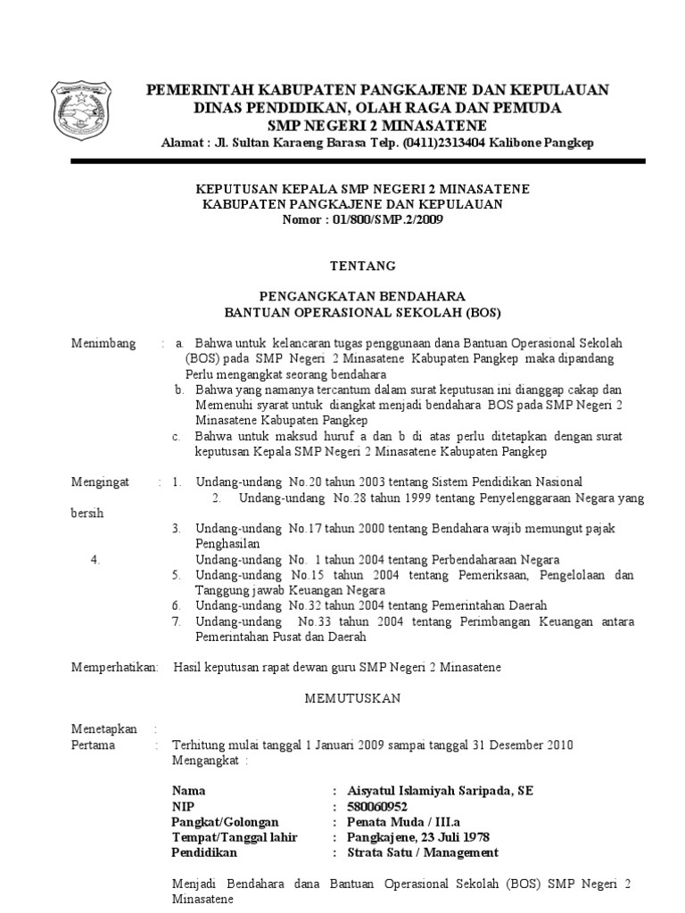 Contoh Sk Bendahara Bos Sd Pdf Guru Ilmu Sosial