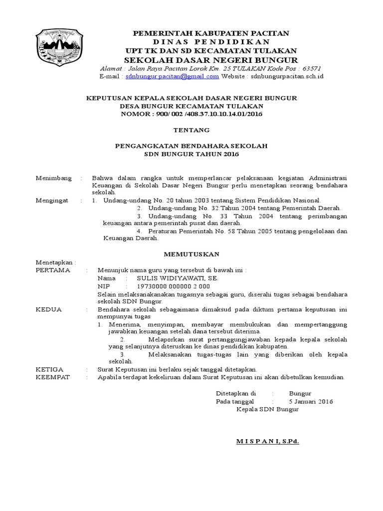 Contoh Sk Bendahara Sekolah