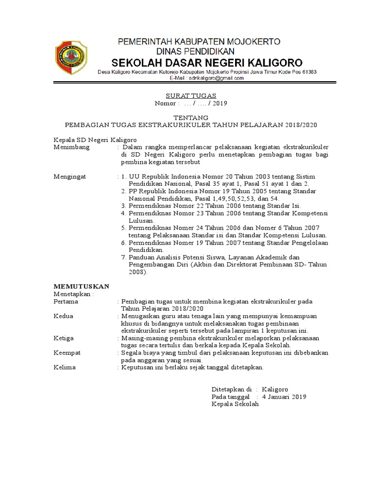 Sk Pengangkatan Pembina Ekstrakurikuler Sd