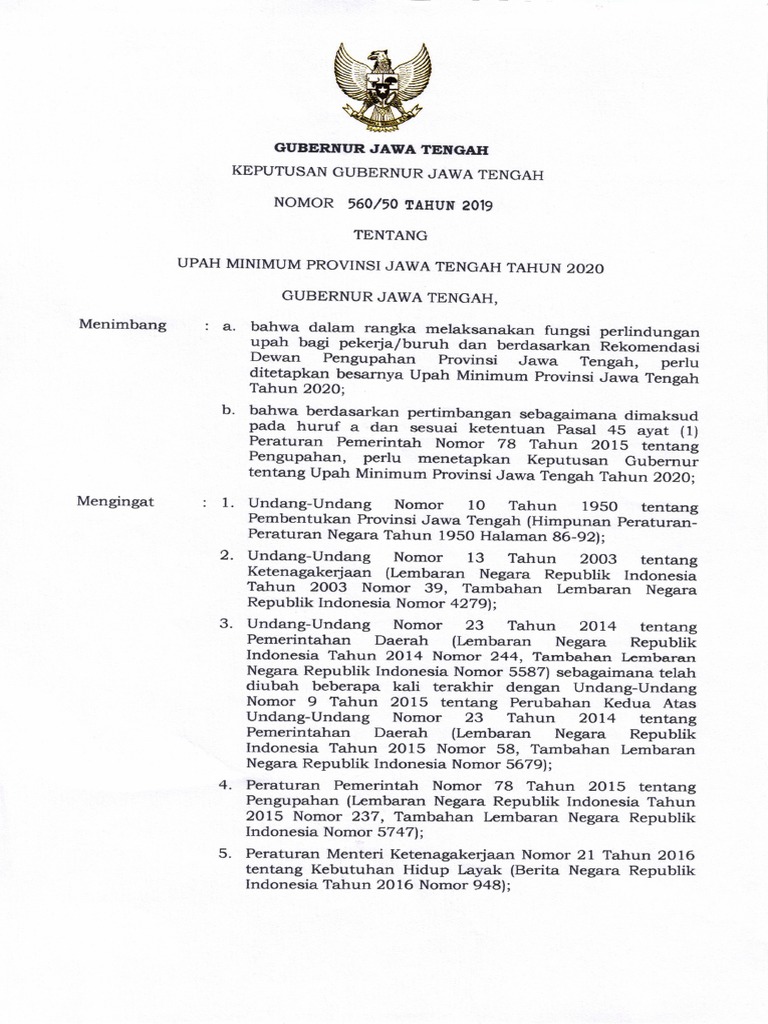 Sk Gubernur Jateng No 560 50 Ump Jateng 202031102019100014