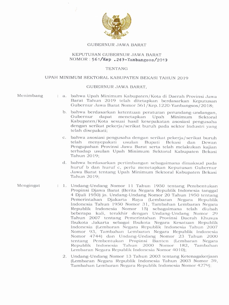 Download Sk Gubernur Jabar No 1220 Tahun 2018 Tentang Umk Tahun 2019 Di Jawa Barat Klipingbekasi