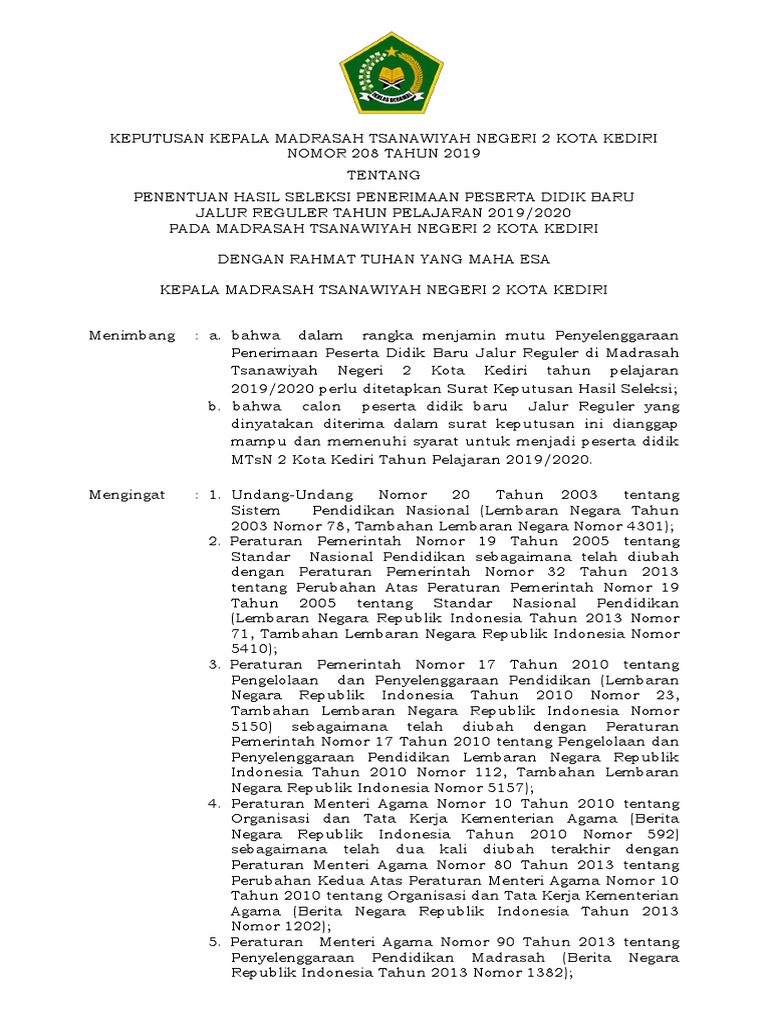 Sk Hasil Seleksi Ppdb 2019 001 Sman 2 Padalarang