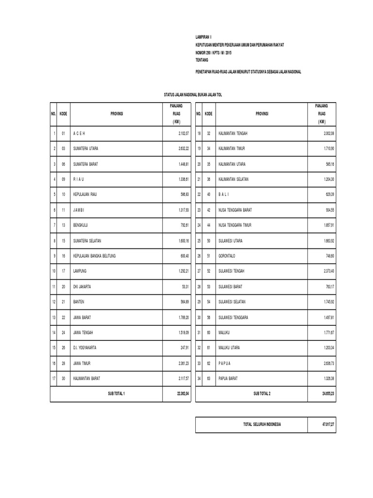 Panjang ruas jalan nasional di prov. Tujuan nasional tersebut adalah melindungi segenap bangsa. 290 tahun 2015 tentang penetapan ruas jalan nasional dan sk dirjen no. Keputusan menteri keuangan nomor 791 tahun 2006.