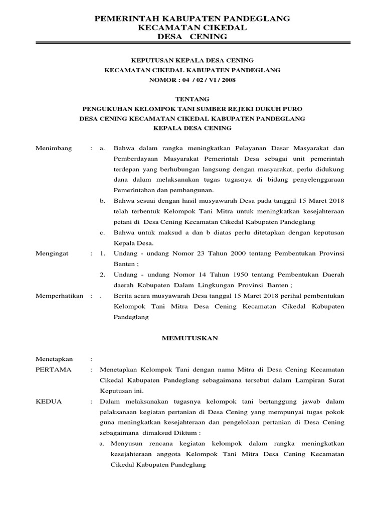 Contoh Sk Kepala Desa Tentang Kelompok Tani Dapatkan Contoh