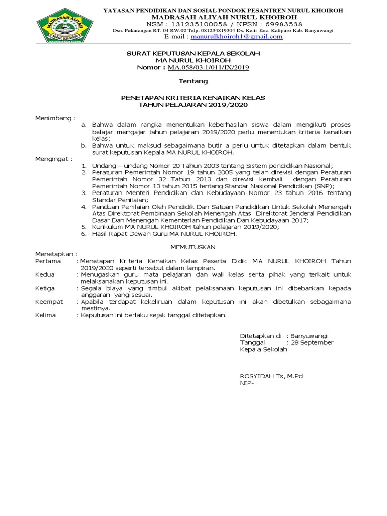 2018 2019 Sk Kriteria Kenaikan Kelas