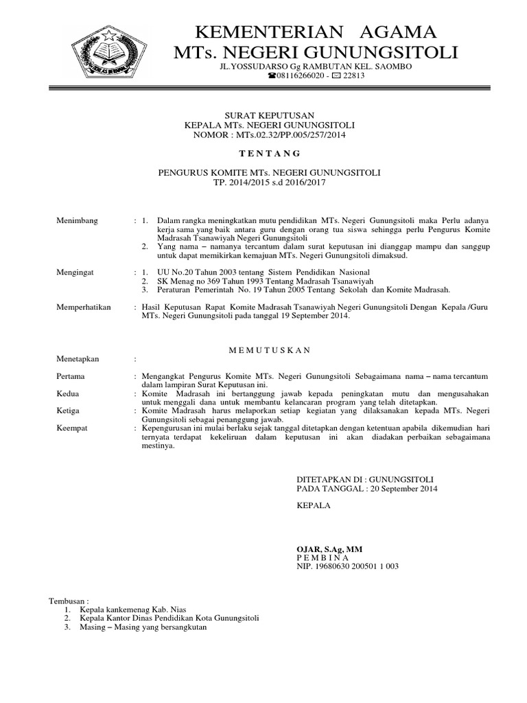 Download Contoh Sk Komite Sekolah Sd Smp Sma Smk Format Microsoft Word Berkas Edukasi