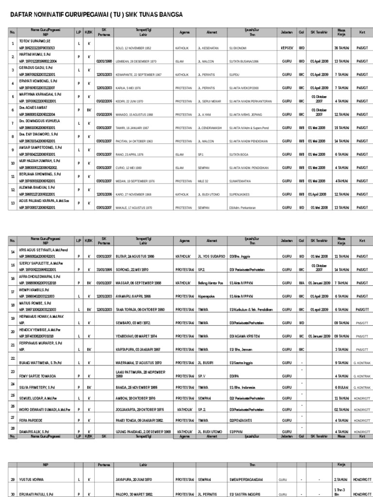 Rekap Daftar Nominatif Pengajuan Nuptk Baru Bagi Guru Nbsp Sk Gty Belum Dilegalisir 2 Sk Pbm Di Sekolah Induk Dalam 5 Thn Terakhir Oleh Yayasan Guru 20583816188001 Uptd Kec Rungkut 1