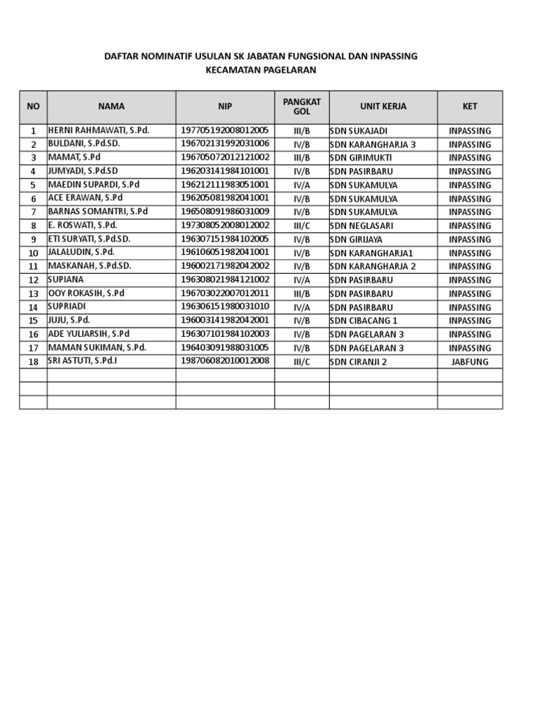 Daftar Nominatif Usulan Sk Jabatan Fungsional Dan Inpassing Kecamatan Pagelaran
