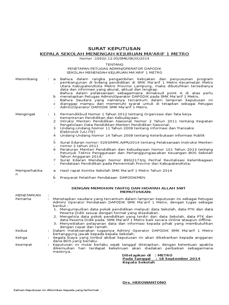 Contoh Sk Operator Sekolah Format Microsoft Word Berkas Edukasi
