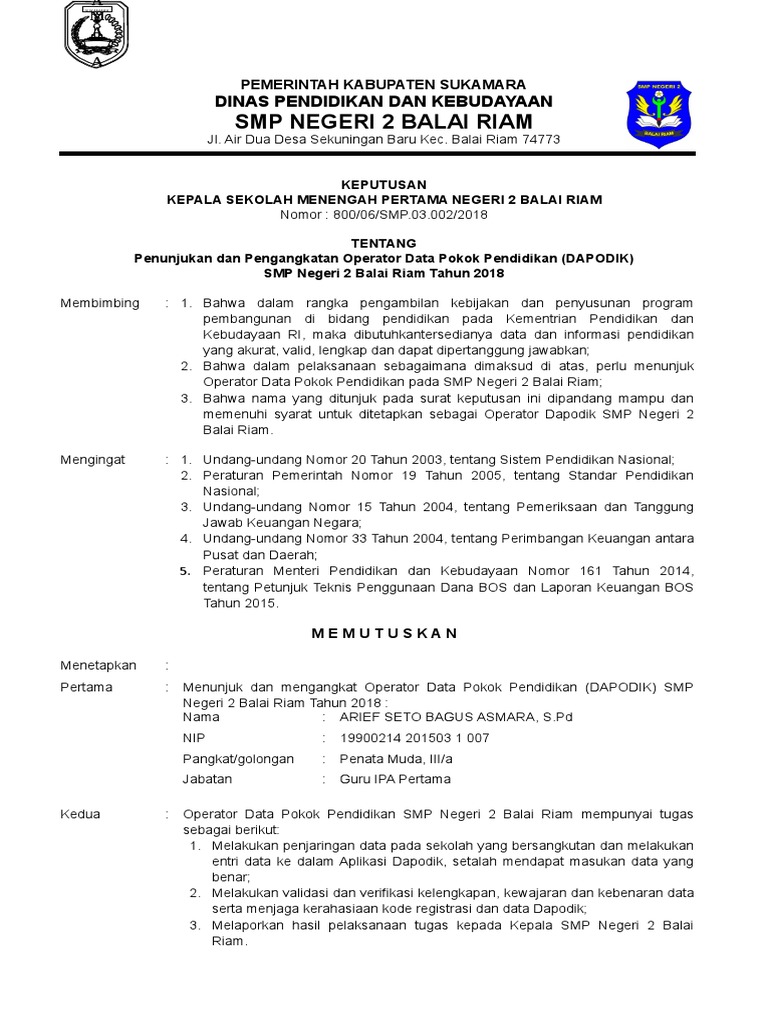 Download Contoh Sk Pengangkatan Operator Sekolah Sma Smk Rianc Racikan Informasi Ala Nasi Campur