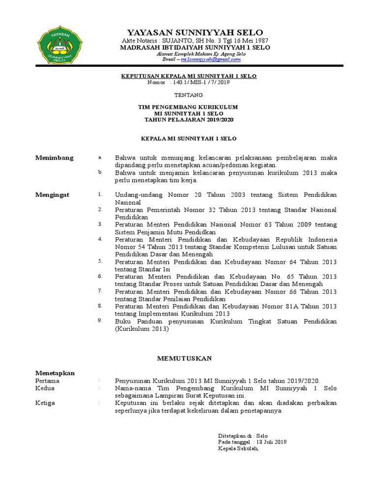 Contoh Sk Tim Pengembang Kurikulum Sd 2019 Guru Ilmu Sosial