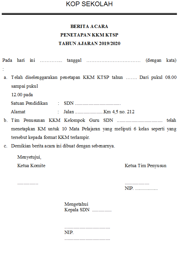Download Berita Acara Dan Penetapan Kkm Sekolah Salam Literasi