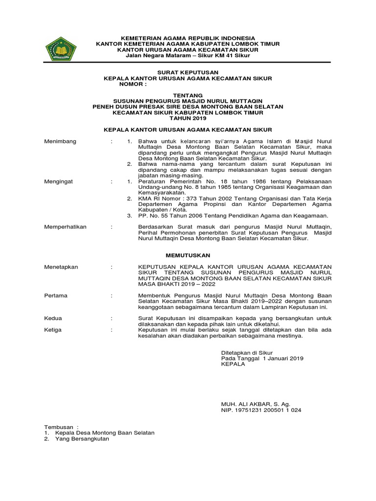 Contoh Sk Pengurus Masjid Dari Kepala Desa Dapatkan Contoh