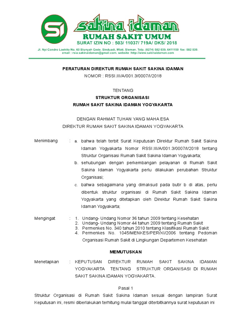 Contoh Surat Keputusan Struktur Organisasi Rumah Sakit