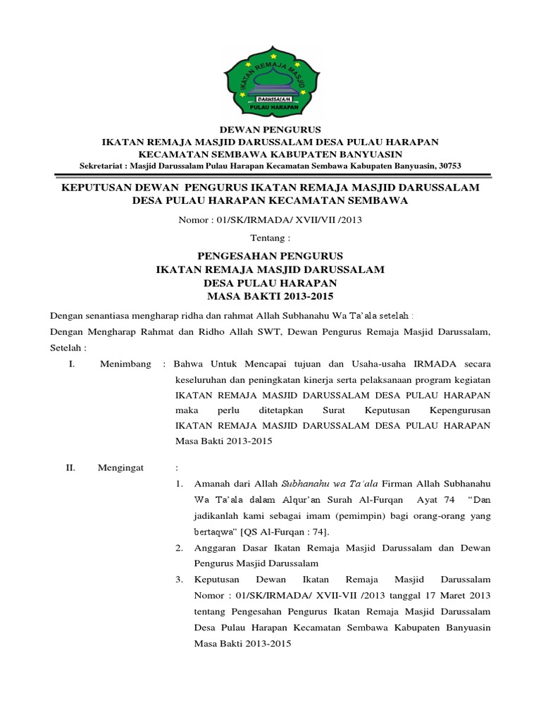 Contoh Sk Remaja Masjid Doc Guru Ilmu Sosial