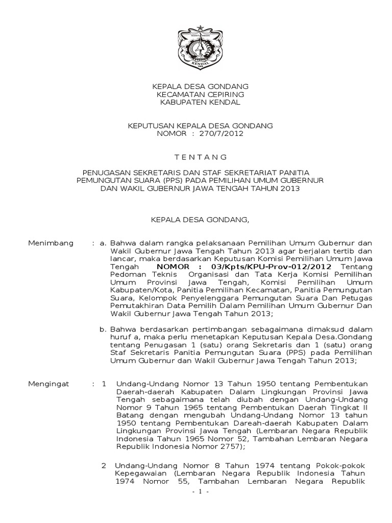Format Sk Sekretariat Pps Komisi Independen Pemilihan