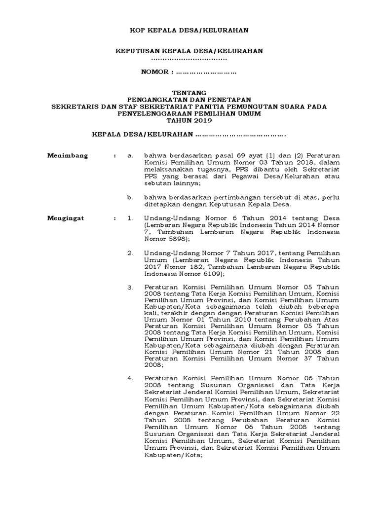 Contoh Sk Sekretariat Pps Pada Pemilu 2019 Doc