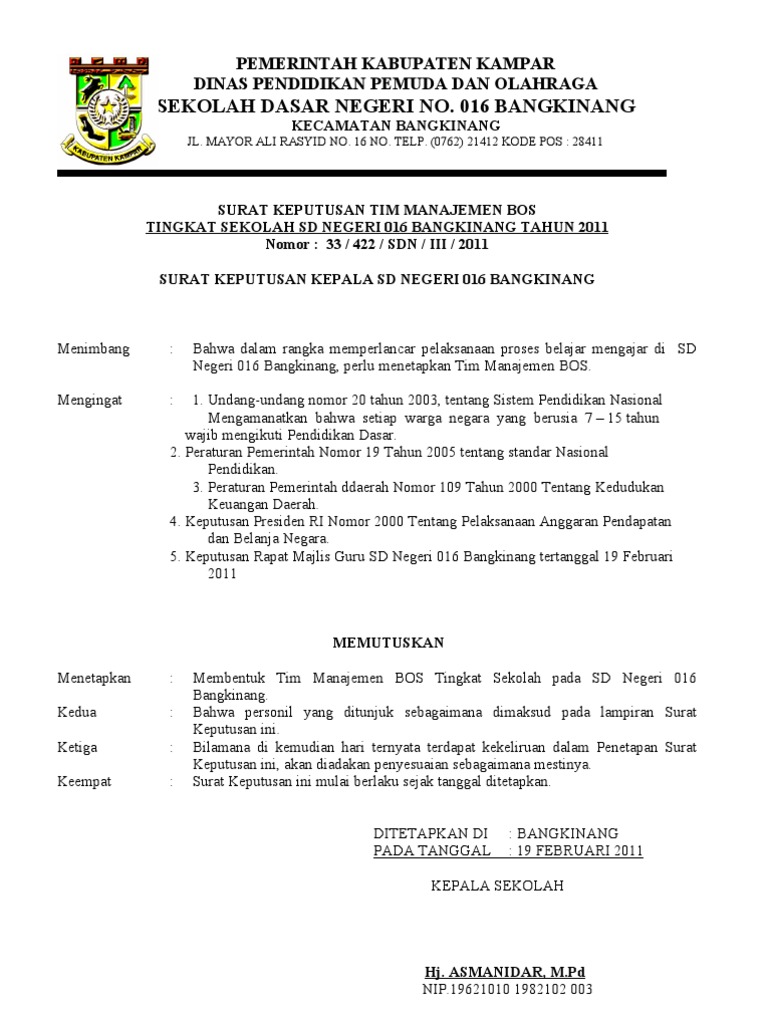 Contoh Sk Tim Manajemen Bos Untuk Sd Berkas Edukasi