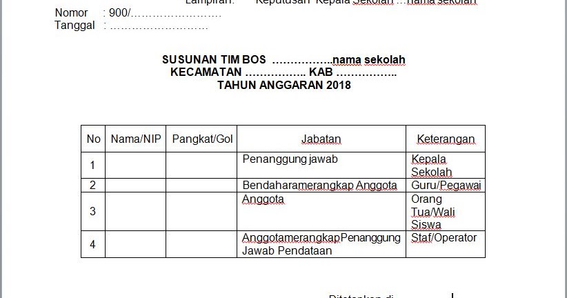 Contoh Sk Tim Bos Reguler Sekolah Terbaru 2020 Format Word