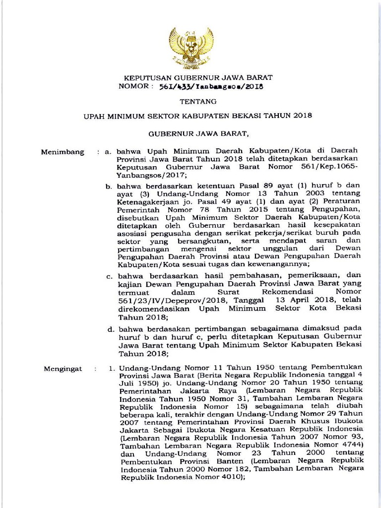 Sk Umsk Kabupaten Bekasi 2018