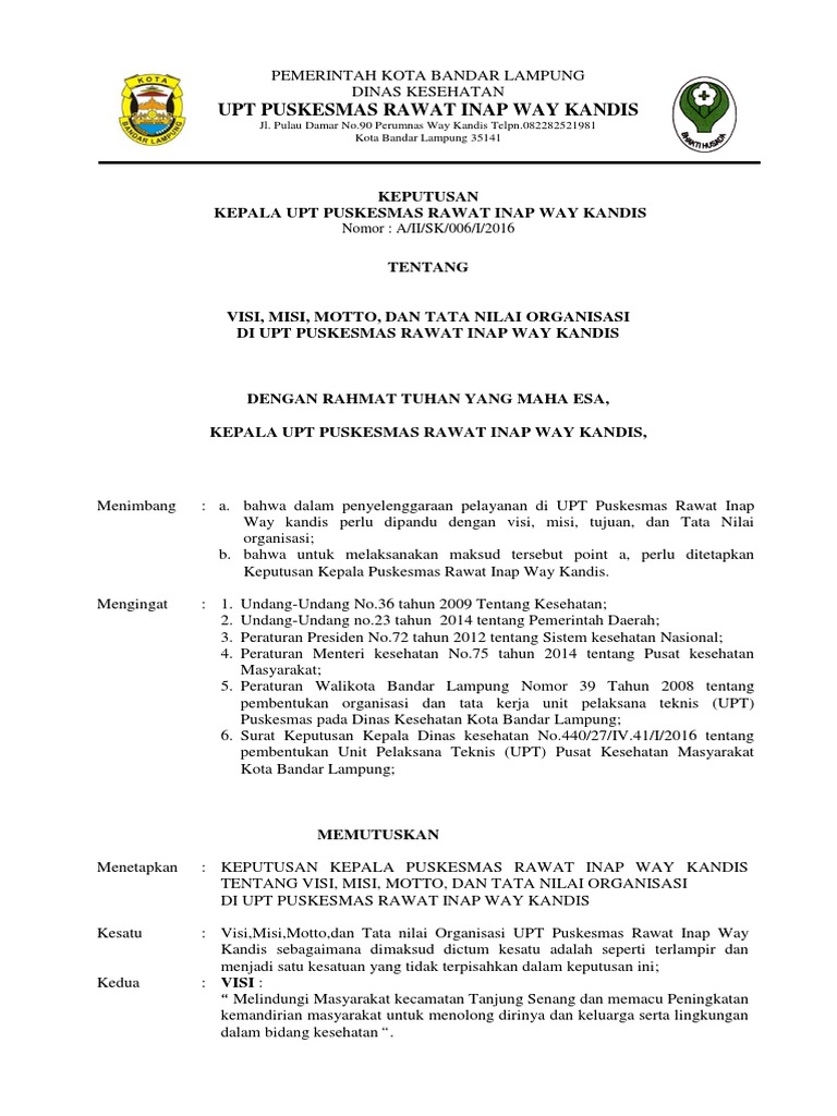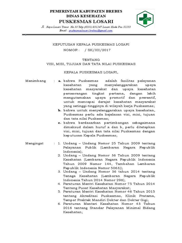 5 Sk Kapus Tentang Visi Misi Tujuan Dan Tata Nilai Puskesmas Pdf Free Download
