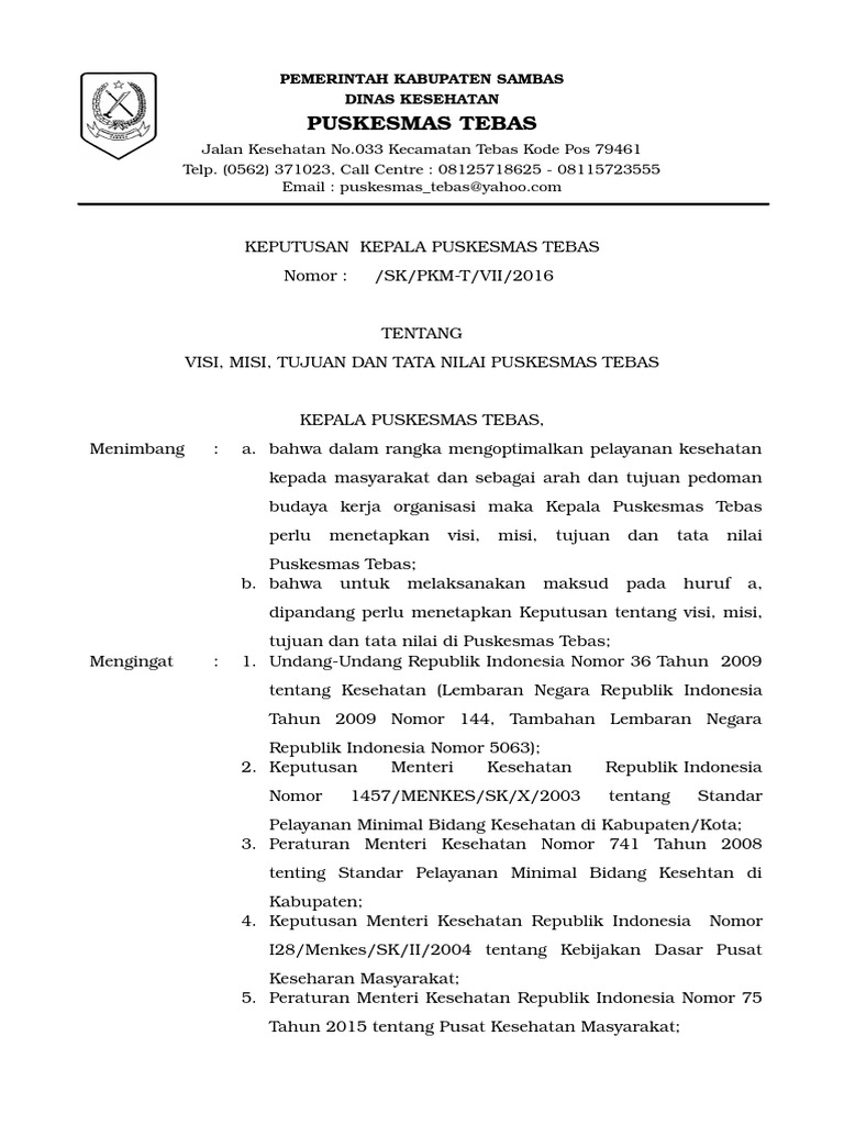 5 Sk Kapus Tentang Visi Misi Tujuan Dan Tata Nilai Puskesmas 6ngegeqwm1lv