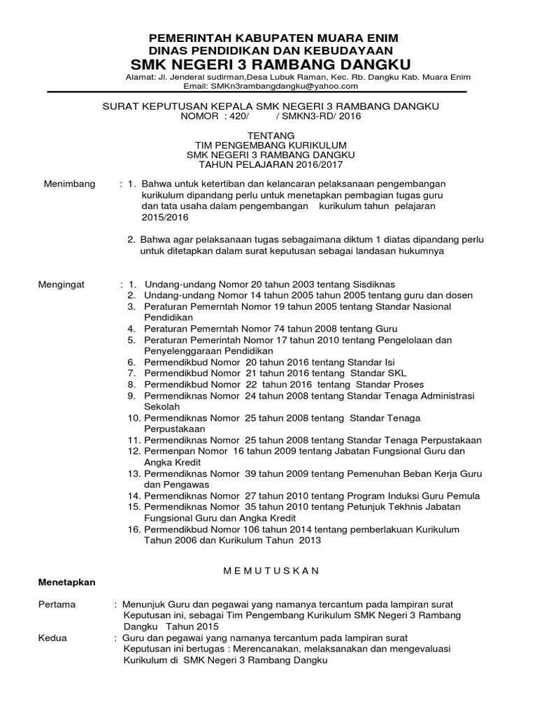 Contoh Sk Wakil Kepala Sekolah Sma Smk Terbaru Kherysuryawan Id