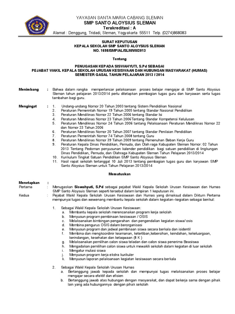 Contoh Sk Wakil Kepala Sekolah Smp Terbaru Kherysuryawan Id