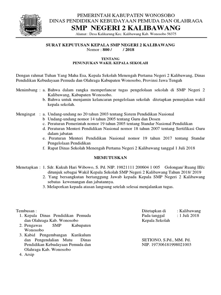 Contoh Sk Wakil Kepala Sekolah Smp Terbaru Kherysuryawan Id