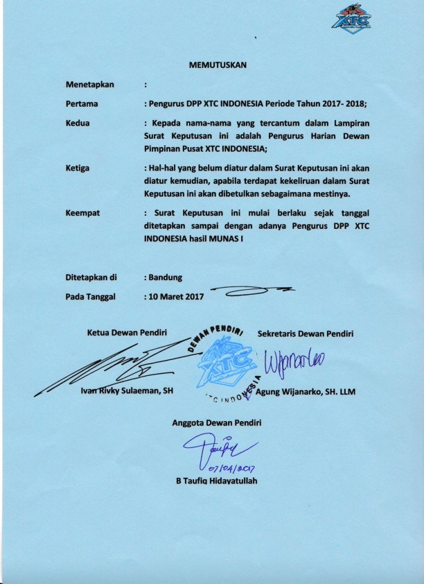 Xtc Indonesia On Twitter Lampiran 1 Sk Dewan Pendiri Xtc Indonesia No 001 Thn 2017 Ttg Penunjukan Penetapan Pengurus Dpp Xtc Indonesia Periode 2017 Sd Munas Https T Co Wjluwoulsu