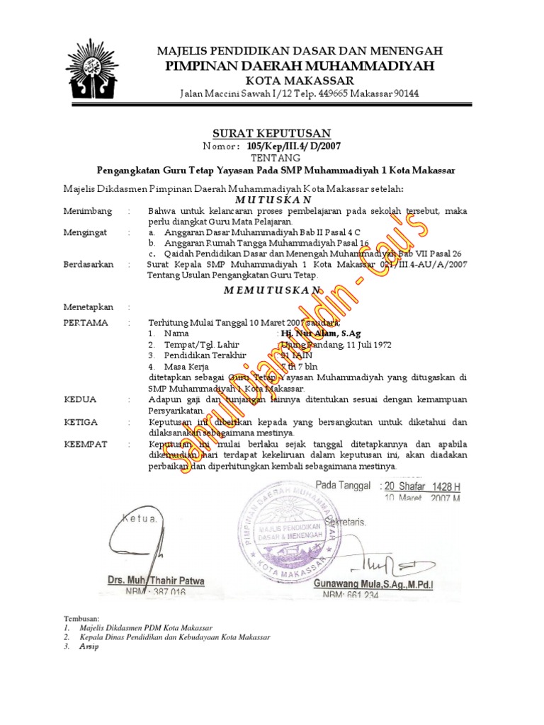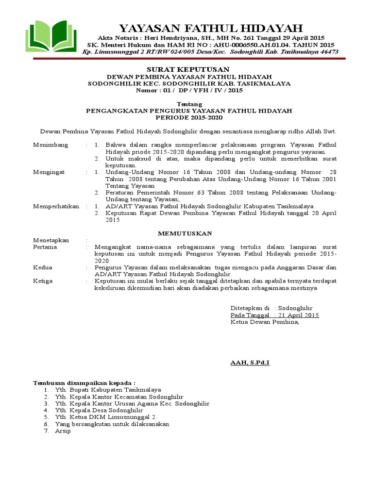 Contoh Sk Pengangkatan Yayasan