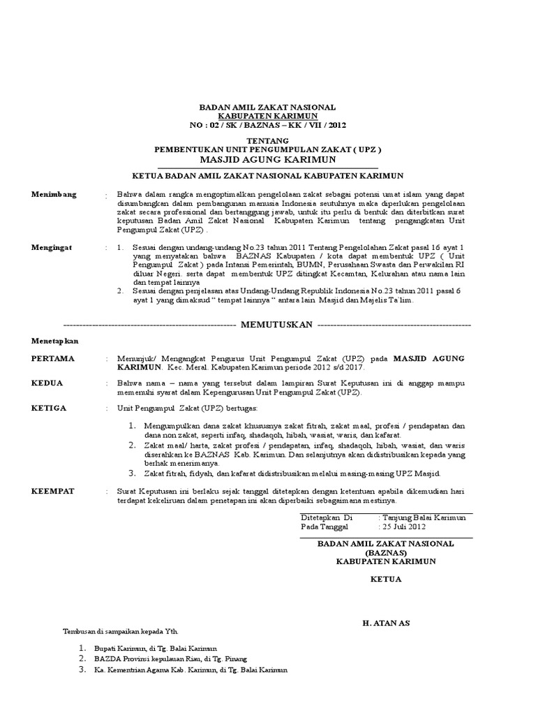 Doc Contoh Sk Pengangkatan Amil Wawan Sumarna Academia Edu