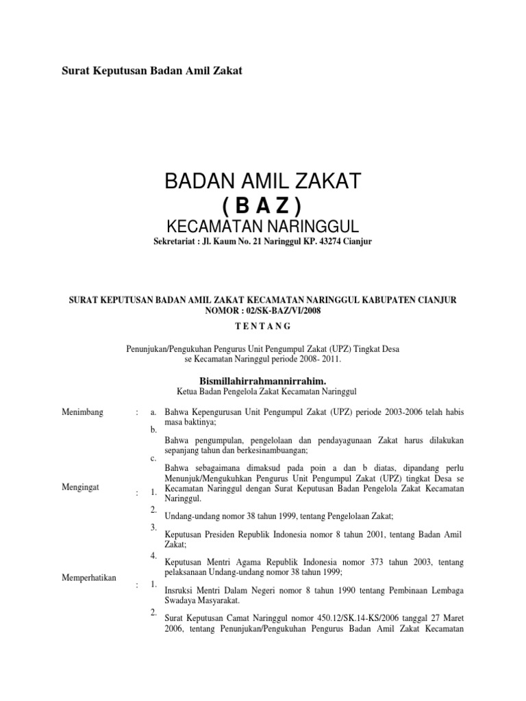 Badan Amil Zakat 2020 Tugas Dasar Hukum Dan Contoh Sk Nya Format Administrasi Desa